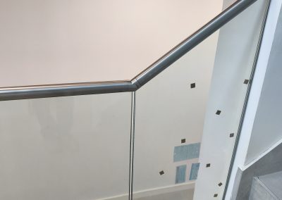 Lo destacable de este tipo de barandilla es la amplitud panorámica de la escalera, no teniendo ningún elemento que nos interfiera. Esta baranda de cristal con botones la puede fabricar en cualquier medida de largo que necesite, aunque hay medidas recomendadas